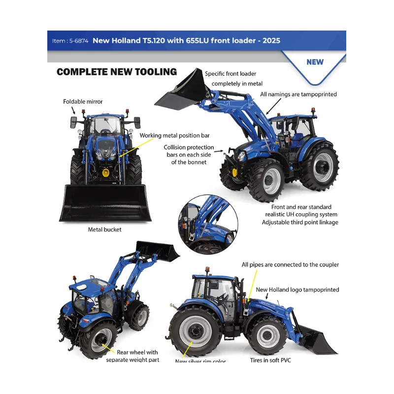 1/32 New Holland t5.120 con caricatore 655lu 2025 UH6874 UNIVERSAL HOBBIES